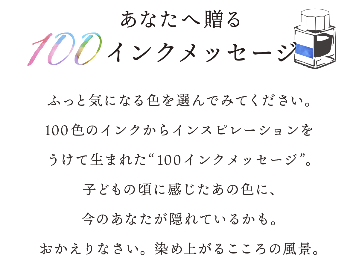 これまで品番しかなかった100色に言葉をつけることで、新たなインクの物語が誕生。