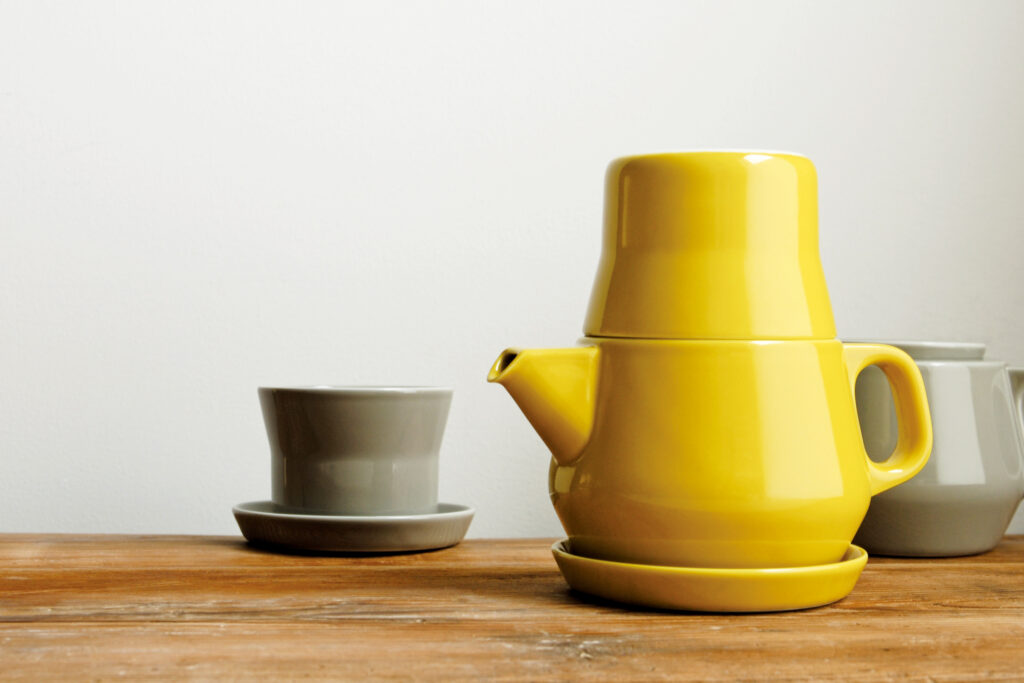 ひとりのお茶時間をスマートに楽しむための、ティーフォーワンセット「COULEUR/クルール」のプロダクトデザインを開発しました。使うときも、重ねて収納するときも、美しい佇まいになるように設計。“ティーフォーワン”は、イギリス発祥のトラディショナルなティーウェアスタイル。ゆえにヴィンテージ感あふれるデザインのものが多い中で「COULEUR/クルール」はそのスタイルを継承しながらも、現代のティータイム・空間にも心地よくフィットするように、上へ伸びるラインをスッキリと捉え洗練されたシルエットに構成。使っていないときは、ひとつの美しいオブジェとして存在できるようにデザインしました。長崎県波佐見町のマイスターが、ひとつひとつ釉薬で丁寧に染め上げた味わい深い色合いも、ひとりのお茶時間を豊かにします。